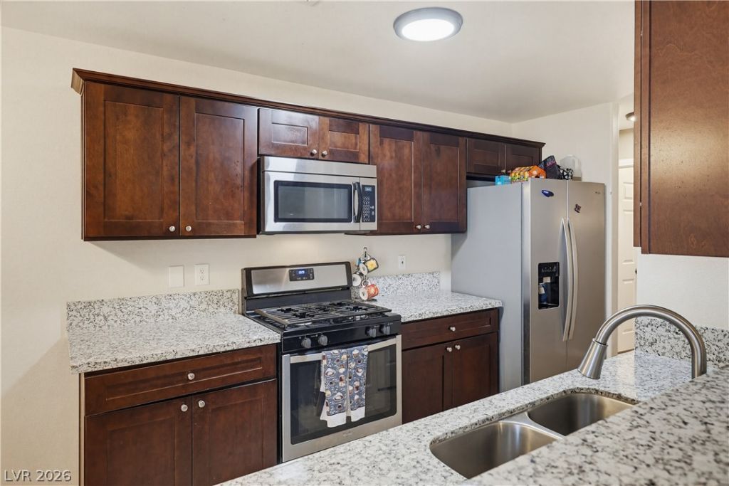 Beautiful single-story home on a desirable corner lot in North Las Vegas! Offering 1,471 sq ft of thoughtfully designed living space, this 3-bedroom home includes an enclosed den that easily functions as a home office or 4th bedroom. The layout is efficient and intentional, maximizing every square foot. Enjoy modern upgrades throughout, creating a clean and contemporary feel. The spacious lot features low-maintenance landscaping for easy upkeep, perfect for today's busy lifestyle. Complete with a 2-car garage, this home combines comfort, functionality, and convenience in one exceptional package.